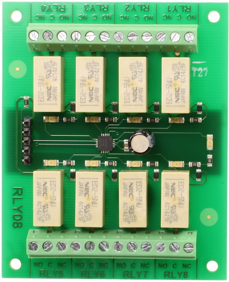 sending any commands. The RLY08 will flash its address out on the LED. One long