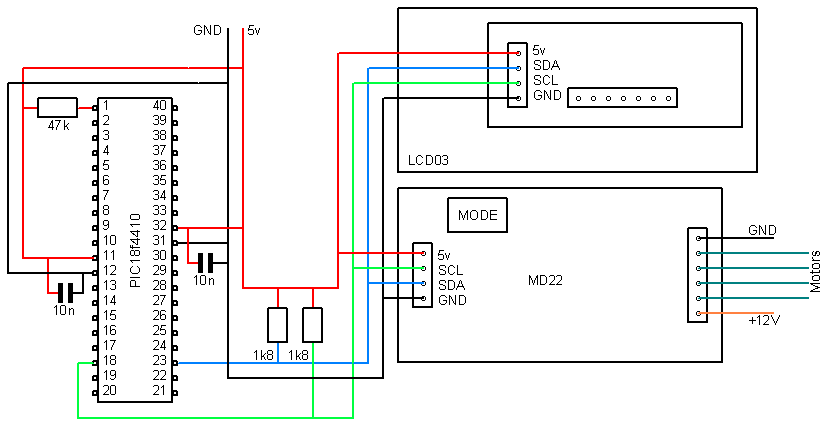 These examples are designed to demonstrate how to use a PIC18F4410 to communicate with our modules, most of these examples use the LCD03 display module to show the results. All the modules which use the I2C bus have 1k8 pull-up resistors to 5v. You only need one set of resistors for the whole I2C bus regardless of however many I2C devices you have connected to it. You can find more information about the I2C bus in our I2C tutorial. All code was written for microchips C18 toolsuit.